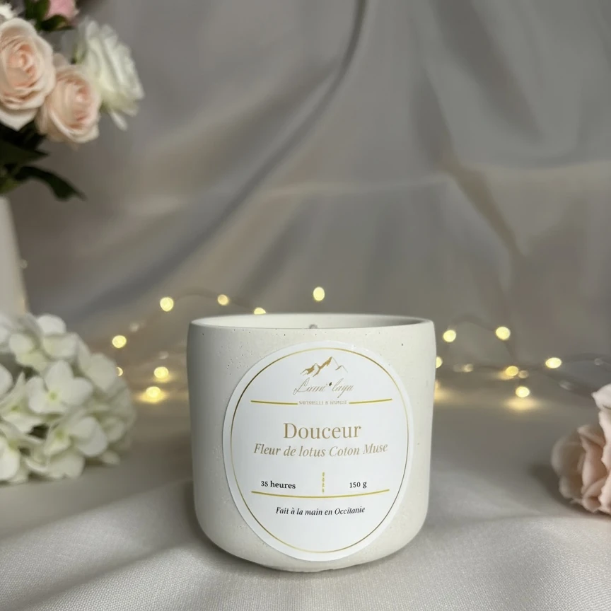 Allumer la bougie Douceur, c’est s’offrir un instant de calme et de légèreté. La flamme diffuse une lumière apaisante tandis que le parfum se déploie lentement dans la pièce, créant une atmosphère pure et enveloppante.Peu à peu, l’air se remplit de notes délicates qui invitent à ralentir et à savourer l’instant présent. Le parfum évoque une sensation de cocon, un moment simple où l’on se sent profondément apaisé. Votre intérieur se transforme alors en un refuge de tranquillité, un espace doux et lumineux où le corps se relâche et où l’esprit retrouve sa sérénité.