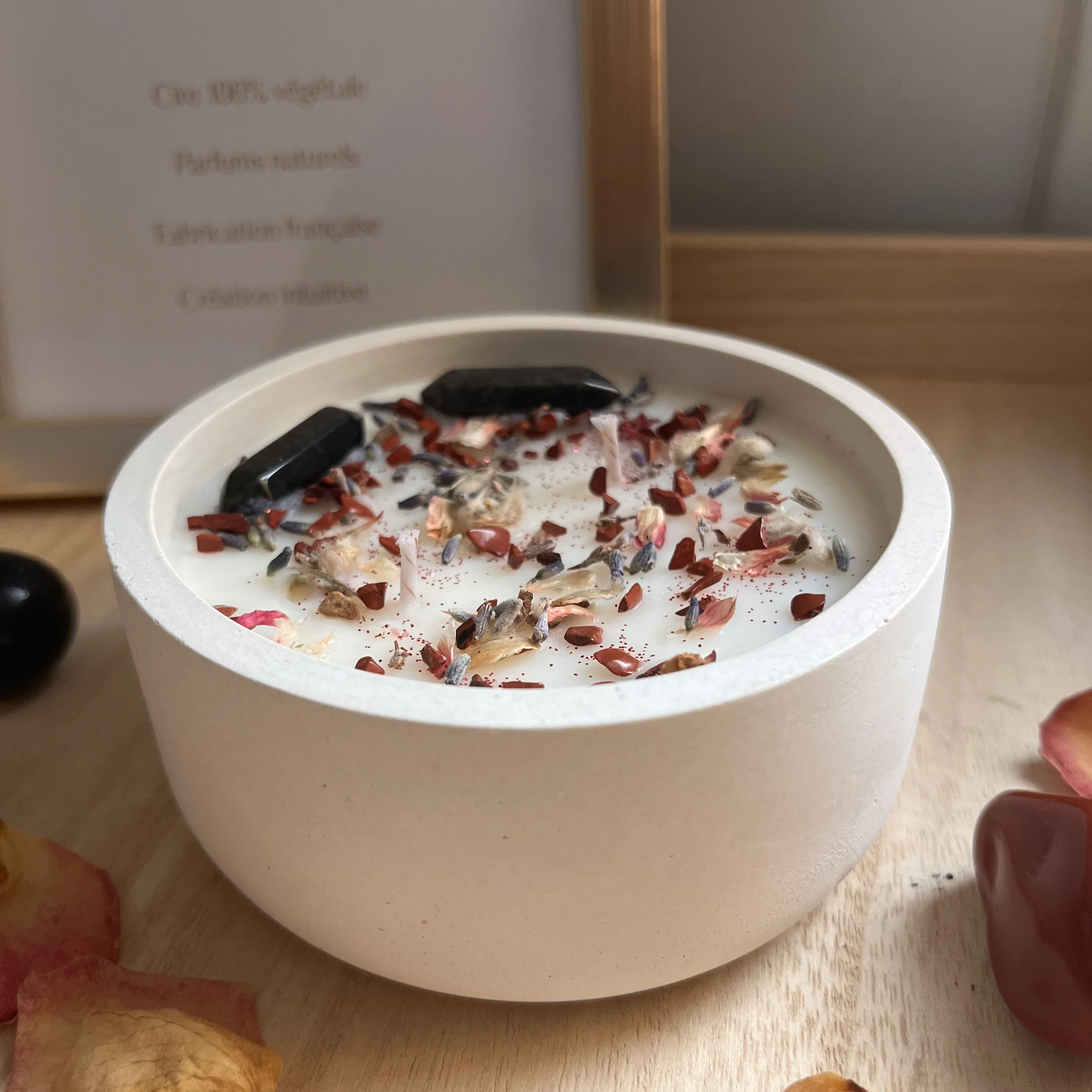 Chaque bougie est coulée à la main dans notre atelier occitan, avec soin et passion pour garantir une qualité irréprochable.